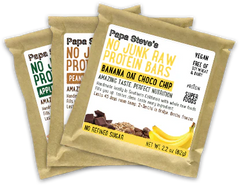 Papa Steve’s No Junk Raw Protein Bars use only the best local, non-GMO ingredients. Nothing that’s ever been processed or refined.