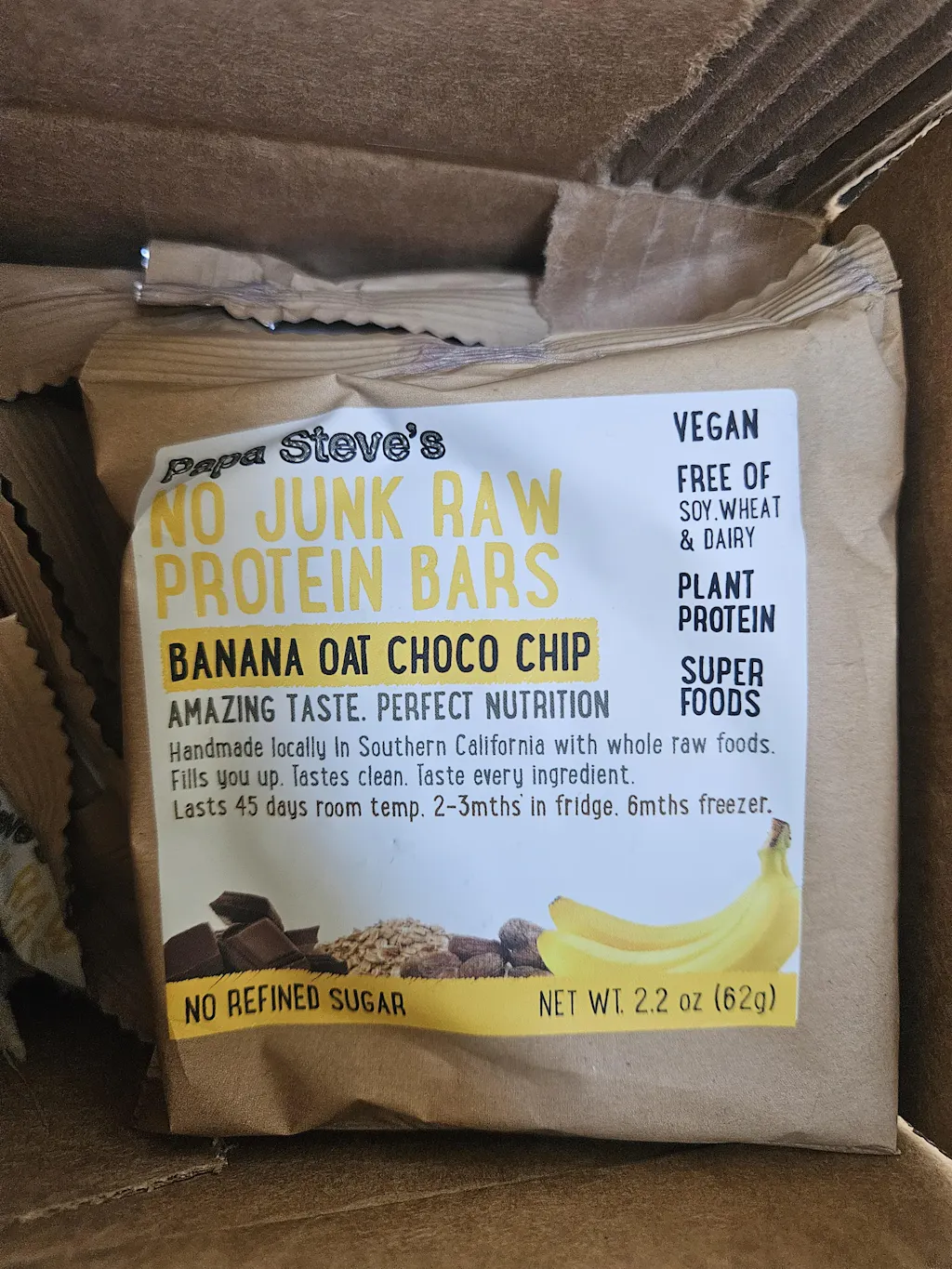 These are not like other bars that sit on the shelves for 8-10 months before you purchase them. Papa Steve’s NO JUNK Raw Protein Bars are made by hand every single week, which means they always contain fresh ingredients.