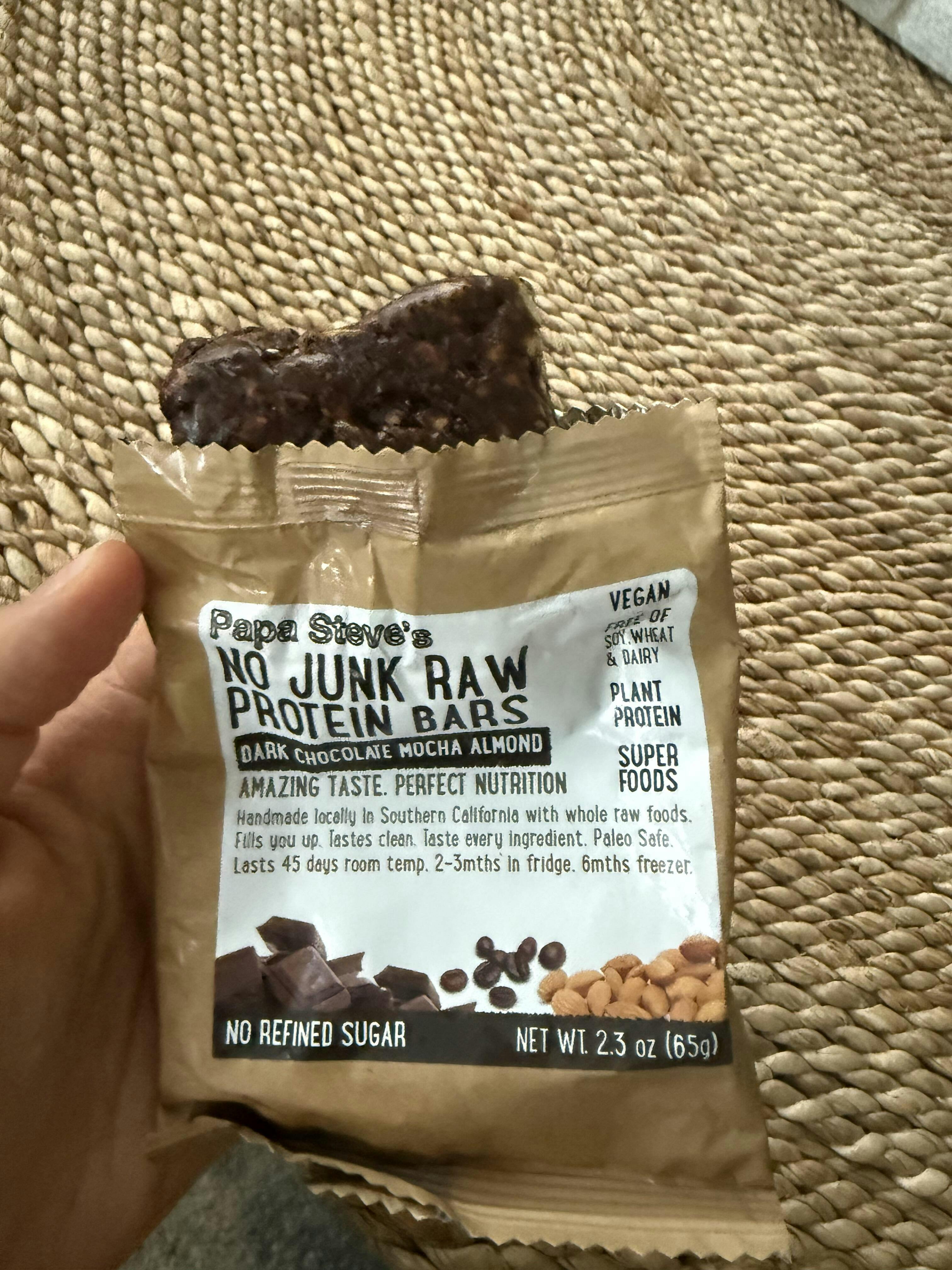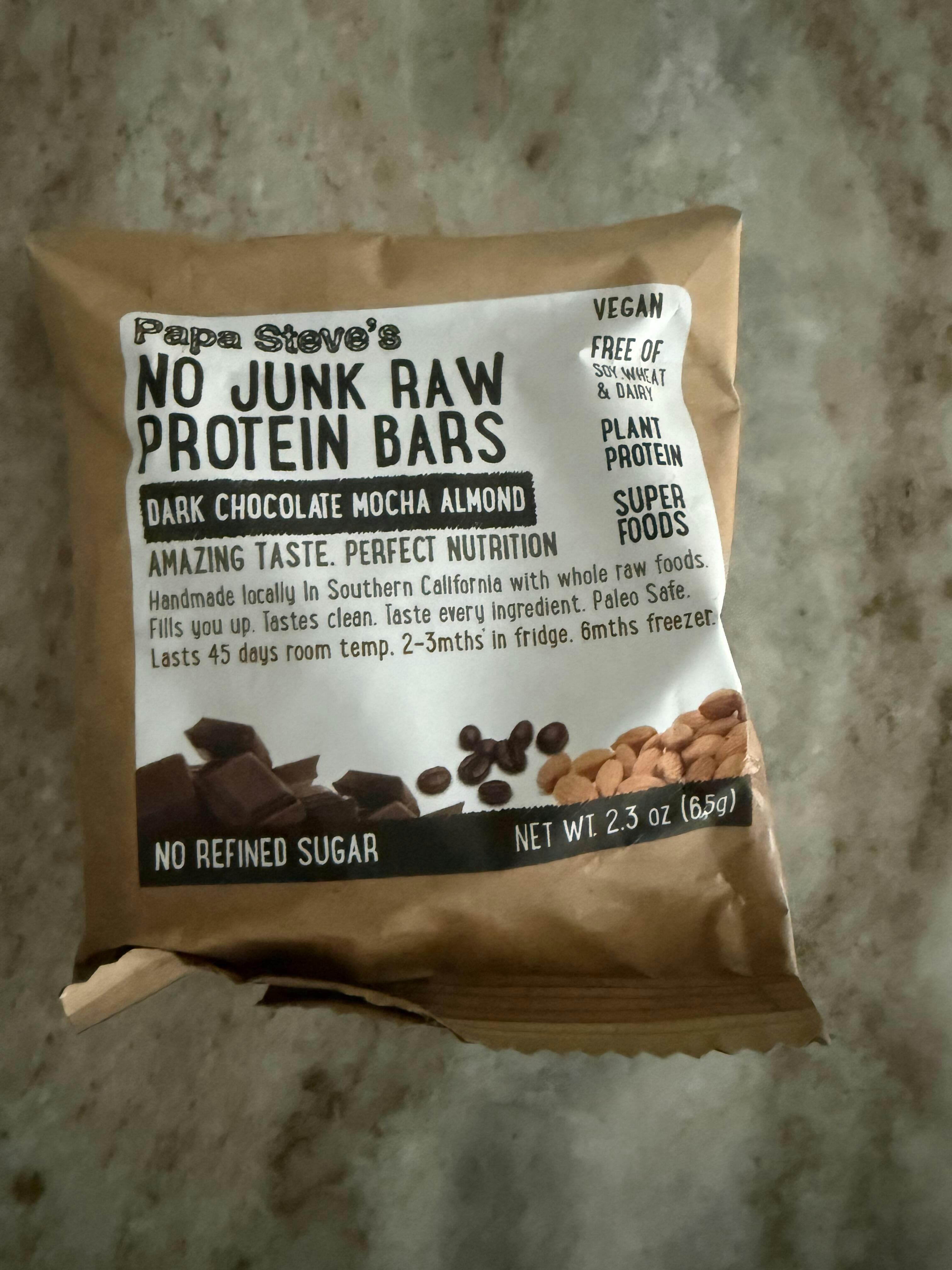 These are not like other bars that sit on the shelves for 8-10 months before you purchase them. Papa Steve’s NO JUNK Raw Protein Bars are made by hand every single week, which means they always contain fresh, raw ingredients.